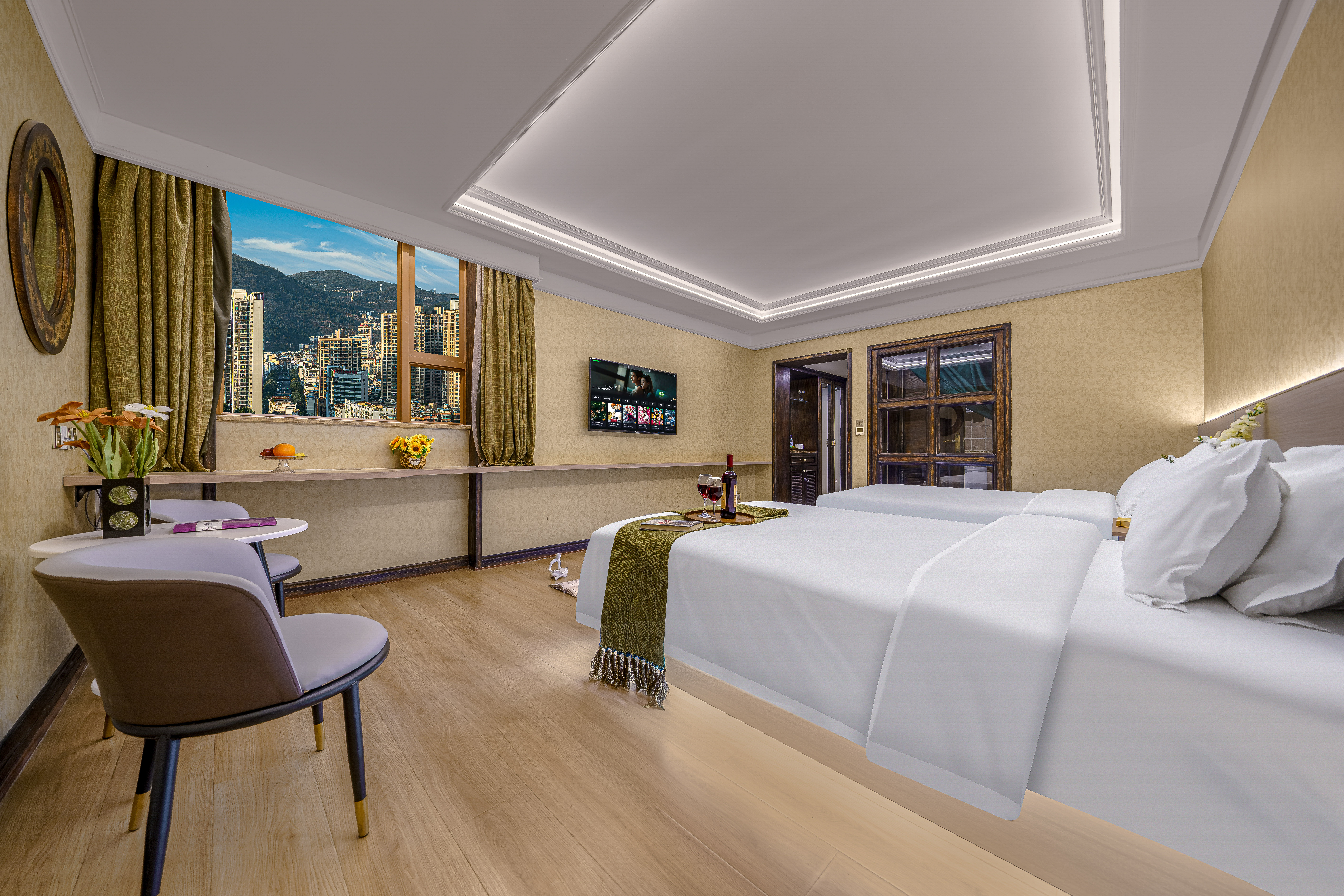 精選豪華雙床房【高層城景+落地窗+陽光通透】